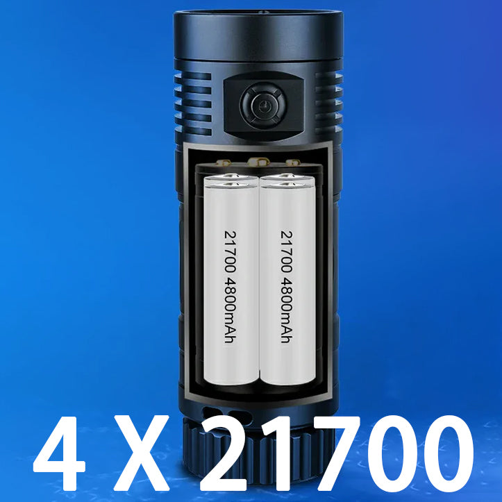 Bei Meerwassertemperatur beträgt die Batterielebensdauer aufgrund der zusätzlichen Wärmeableitung des Wassers bei maximaler Helligkeit etwa 55 Minuten, gemessen in Meerwasser bei 25 Grad. Bitte verwenden Sie bei längeren Tauchgängen den Zwischenmodus.